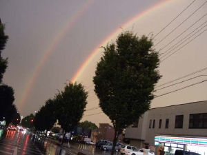 写真は先日、実家に帰った時に大雨の後の二重の「虹」が、街に180度架かりまして、しかも「虹」の内側と外側では、空の色が違う、43回目の夏にして初めての経験を写真におさめたので、皆さんにも不思議現象を見ていただきたく、載せてみましたなりぃ~♪